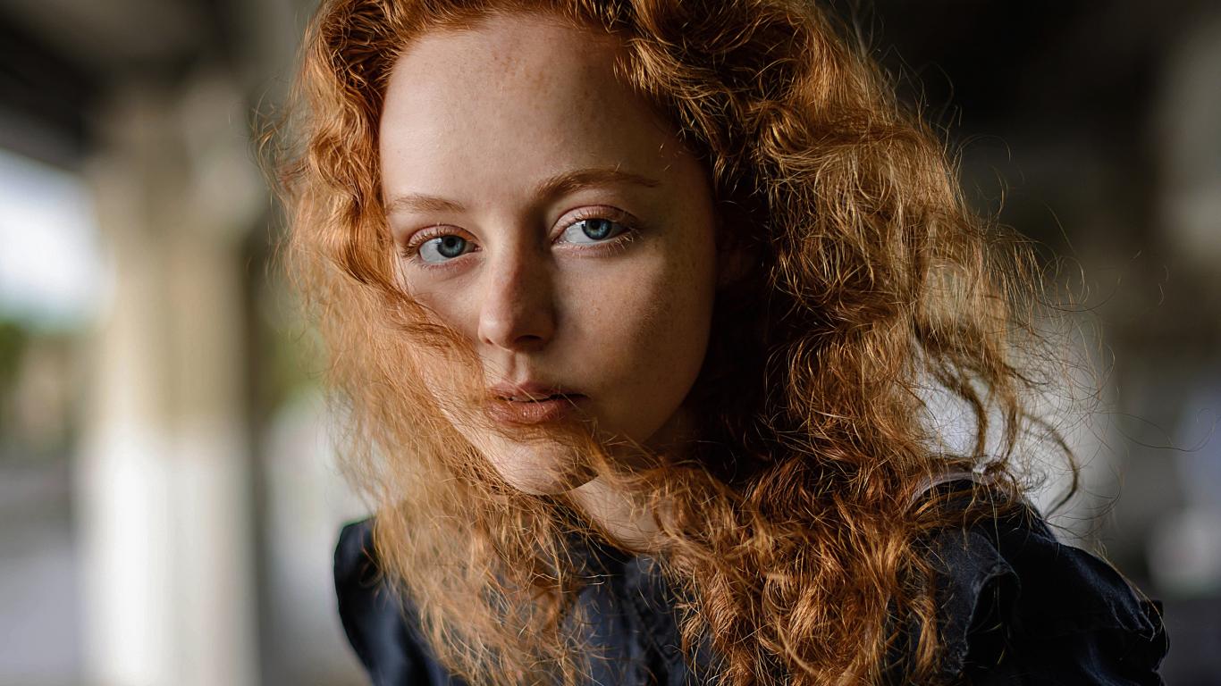 Wallpaper Beautiful blue-eyed red-haired girl with freckles