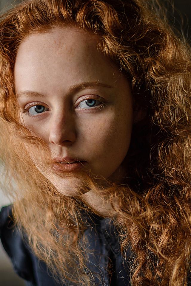 Wallpaper Beautiful blue-eyed red-haired girl with freckles