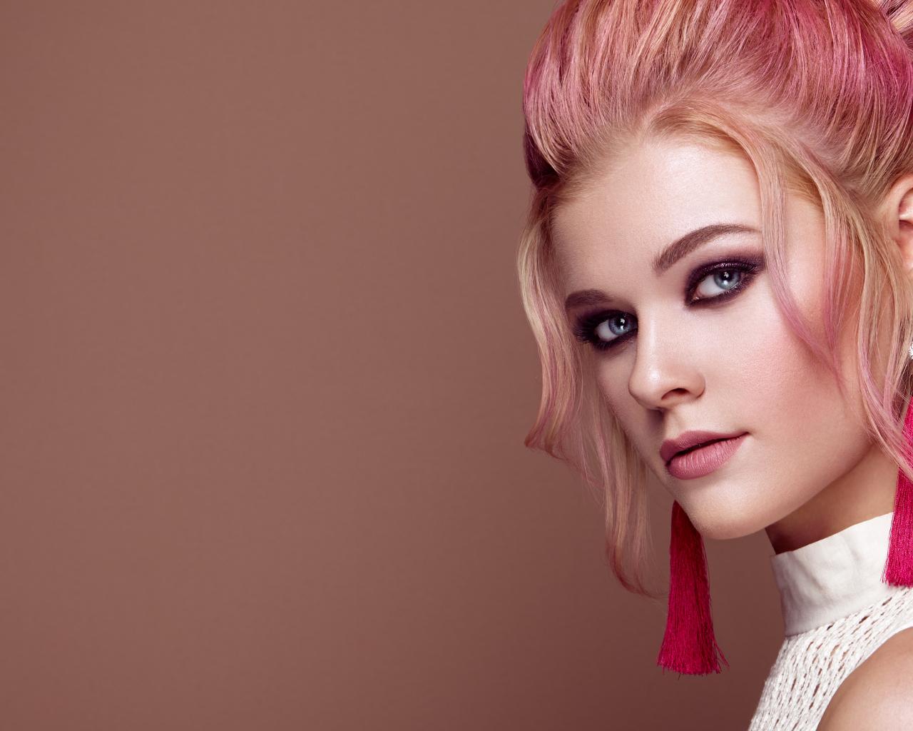 Wallpaper Beautiful girl with blue eyes and pink hair