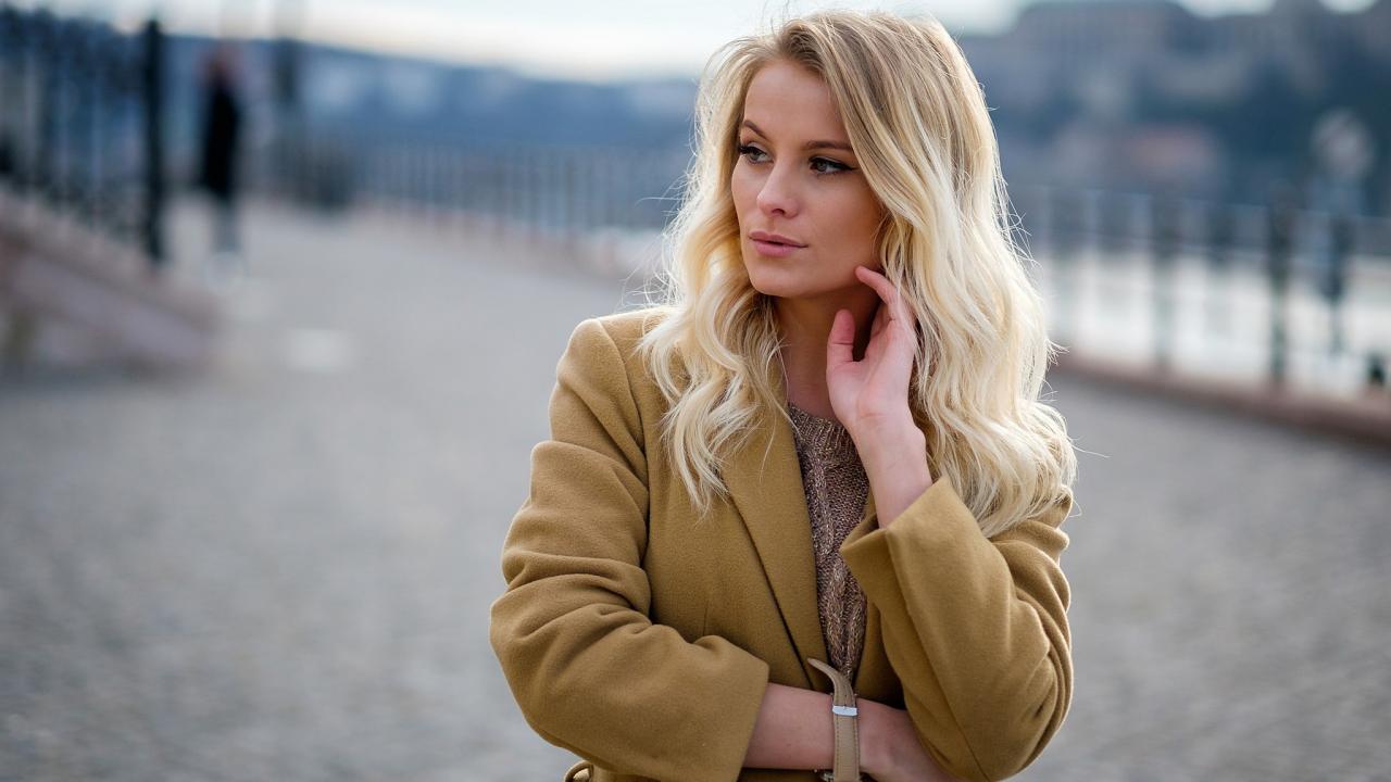 Wallpaper Stylish blonde in coat