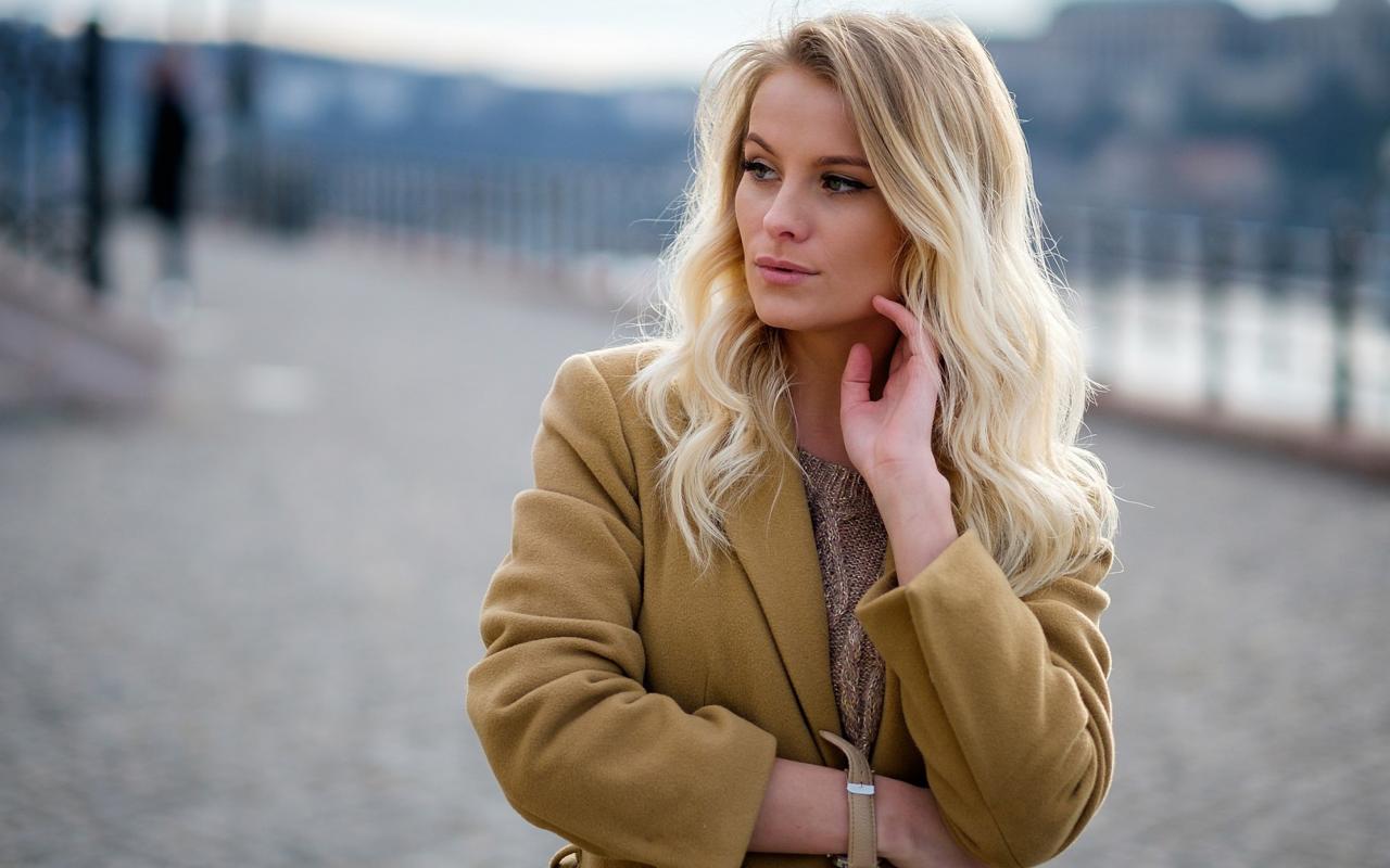 Wallpaper Stylish blonde in coat