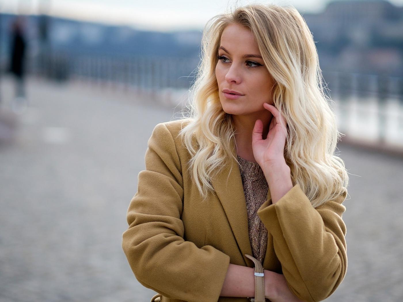 Wallpaper Stylish blonde in coat
