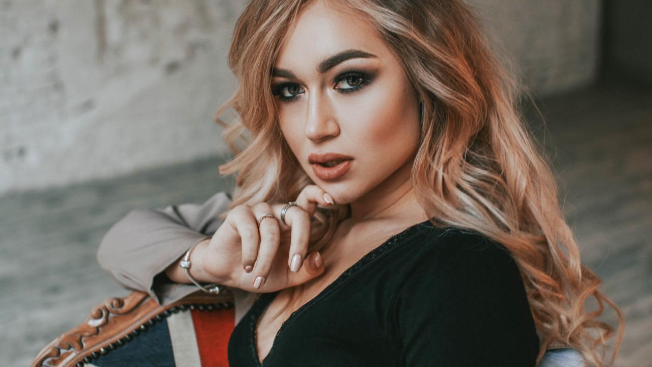 Wallpaper Hot girl with makeup sits on a chair