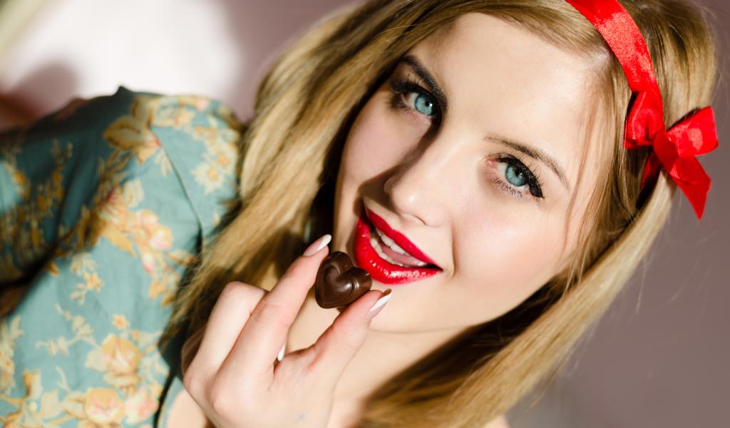 Wallpaper Bright blue-eyed girl with chocolate candy