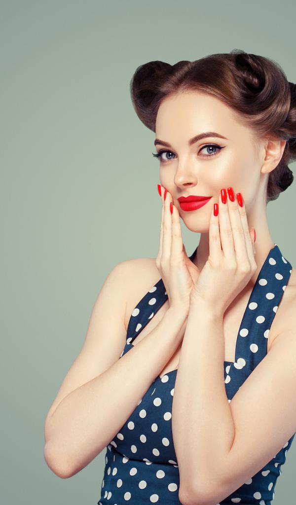 Wallpaper Beautiful girl with bright makeup on a gray background