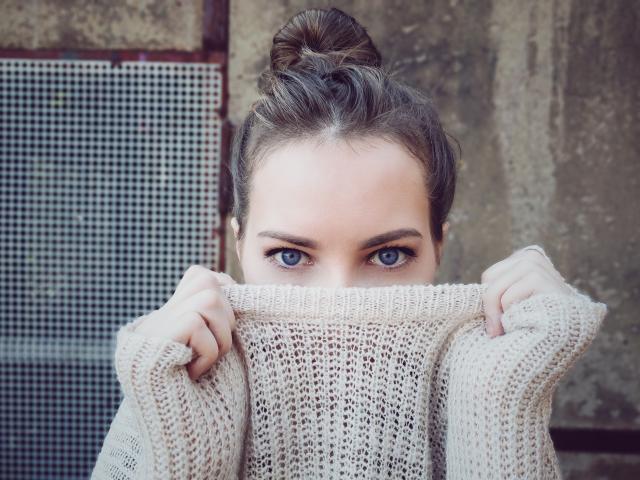 Wallpaper Blue-eyed girl covered her face with a sweater