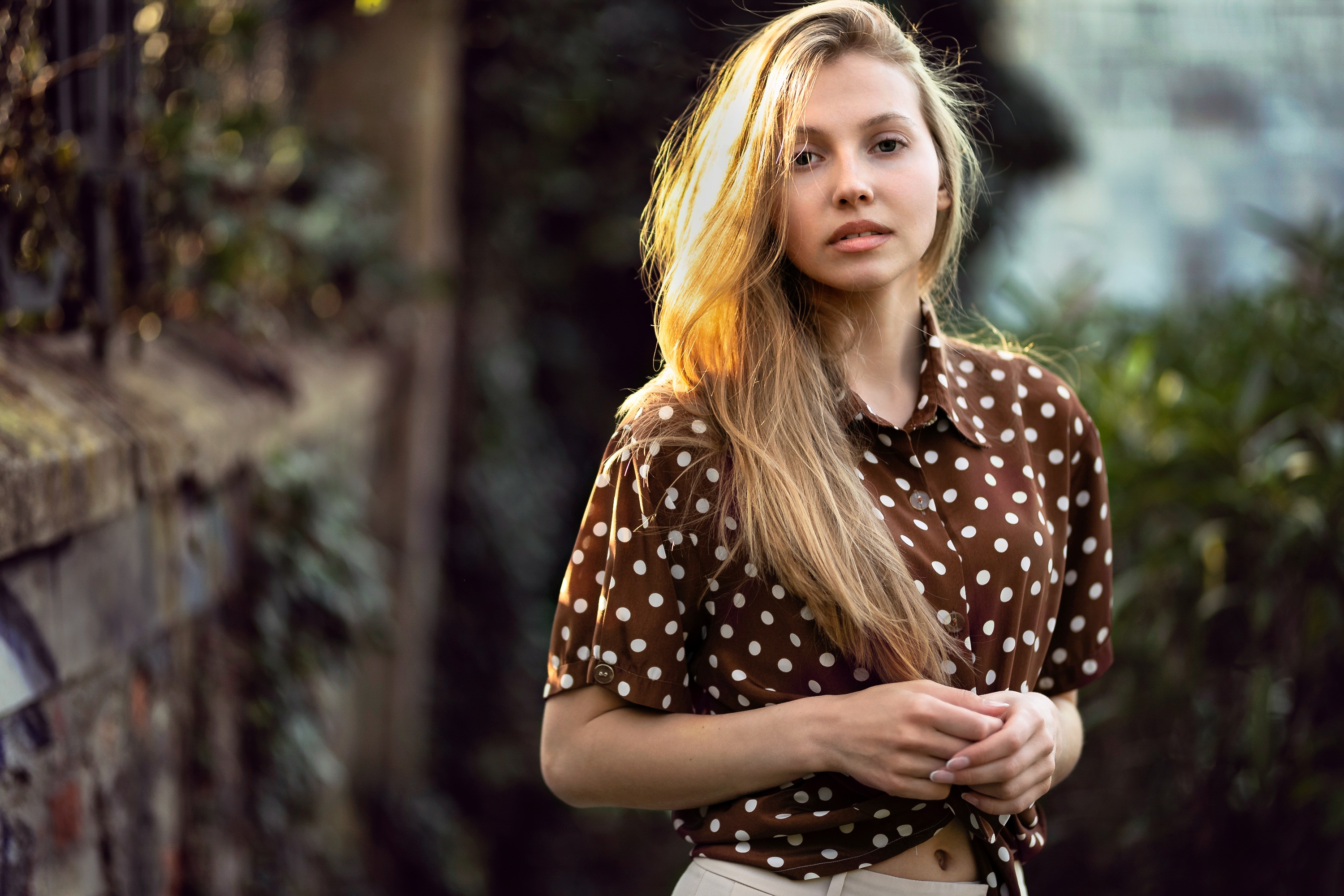 Wallpaper Beautiful girl in a shirt in peas