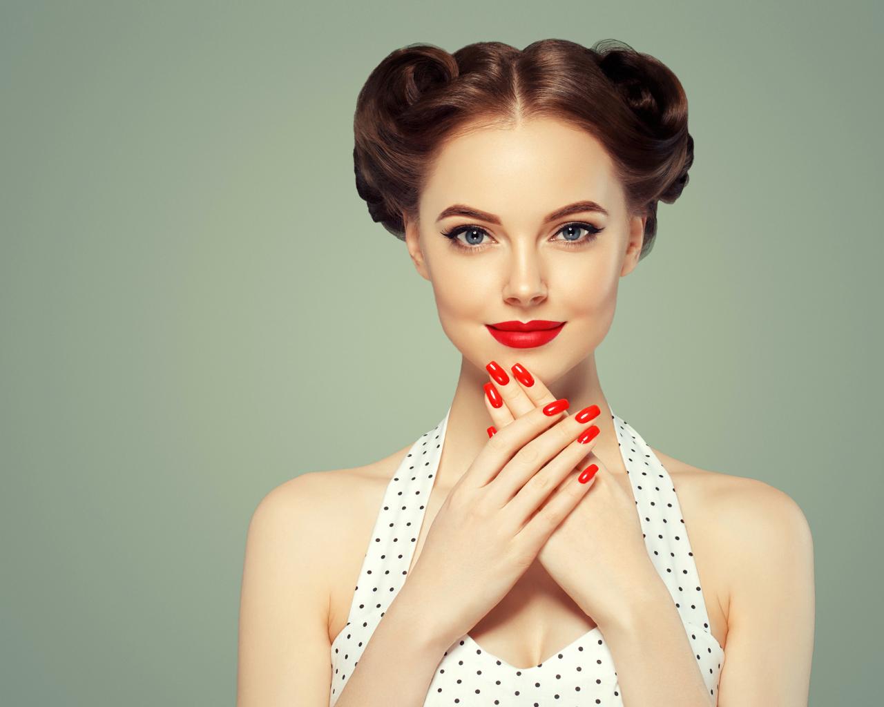 Wallpaper Beautiful brown hair with bright red nails