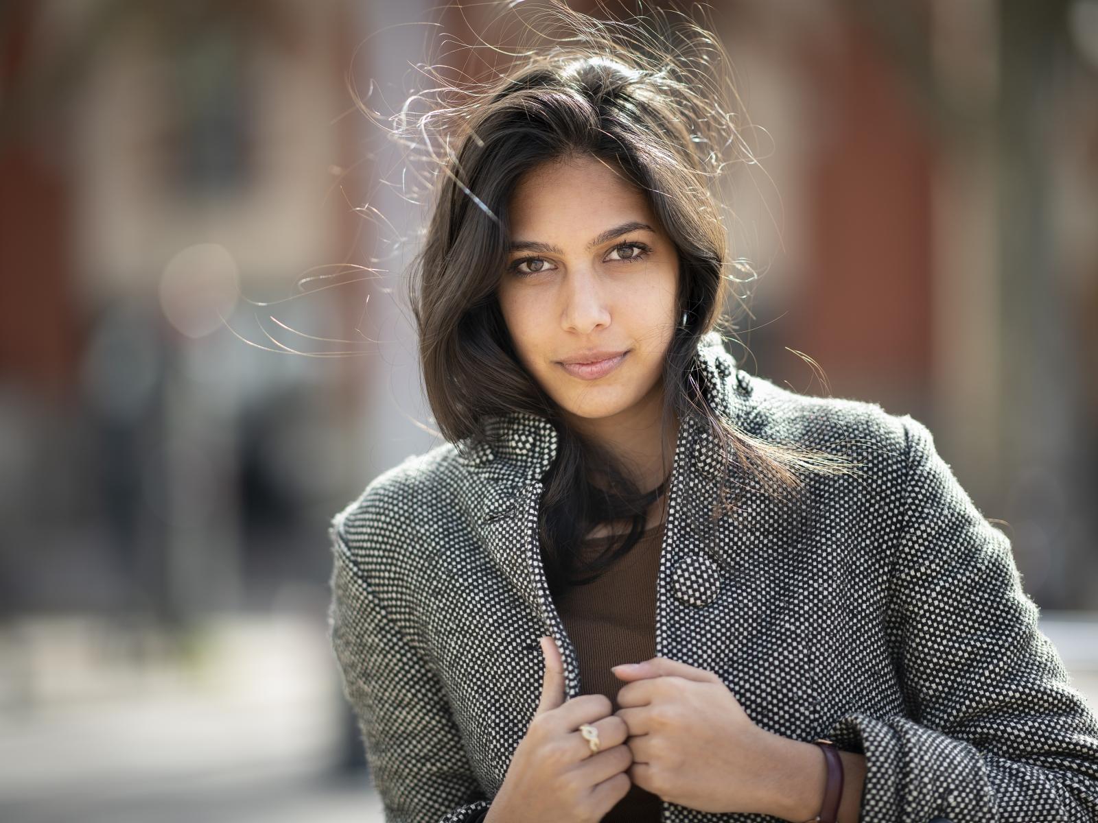 » Wallpaper Young girl in a gray coat