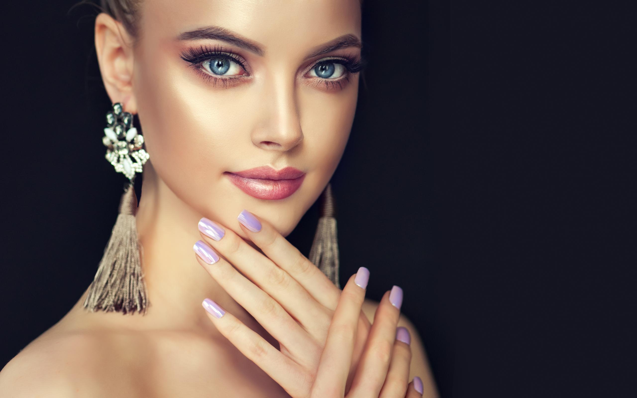 Wallpaper Beautiful girl with big blue eyes and beautiful nails