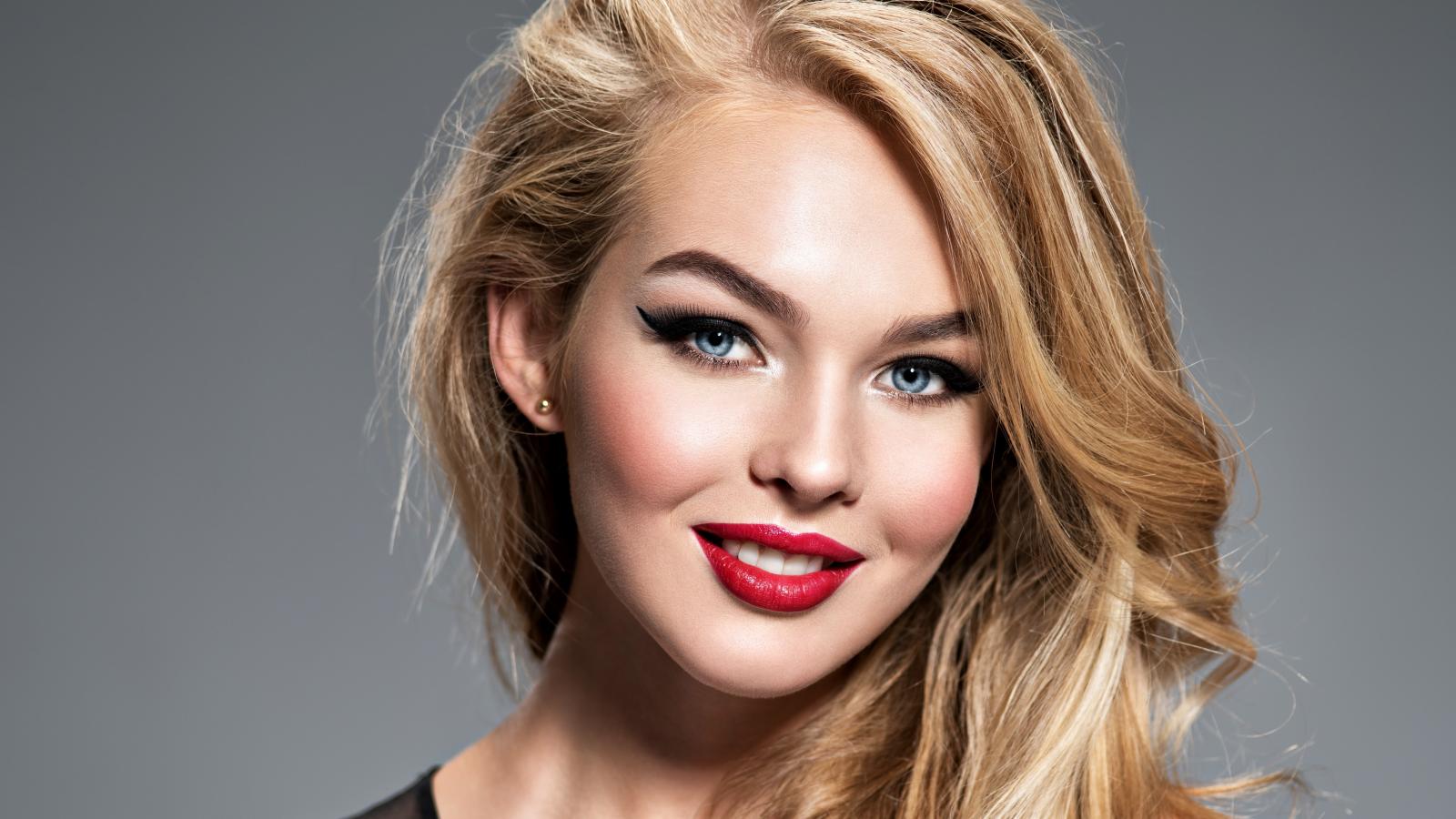 Wallpaper Long-haired blue-eyed girl with beautiful makeup