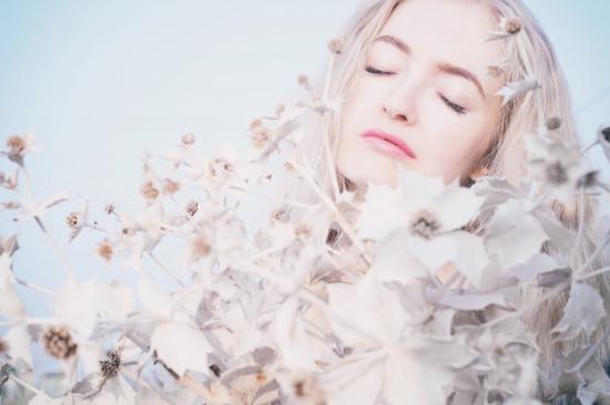 » Wallpaper Girl with eyes closed in flowers
