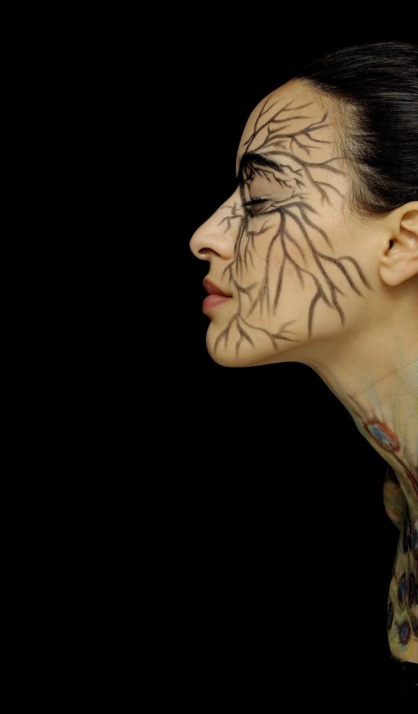 Wallpaper Girl with pictures on the body on a black background