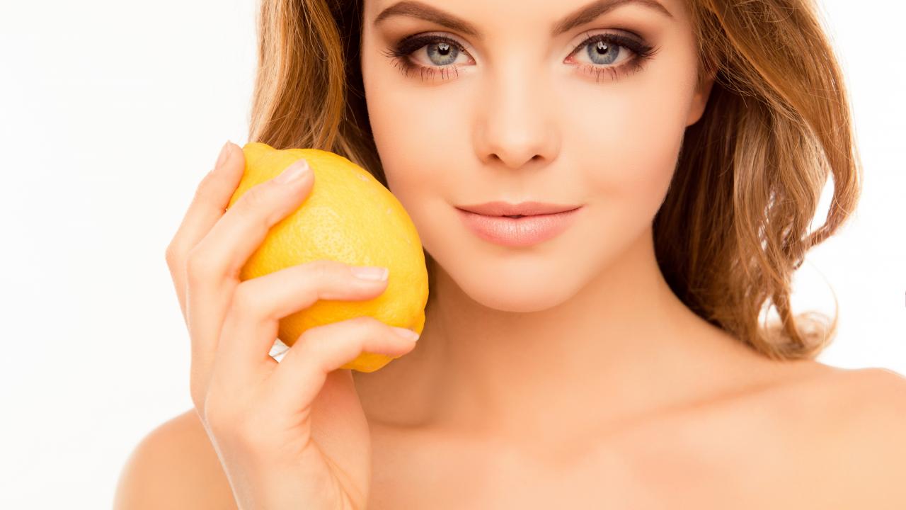 Wallpaper Tender blue-eyed girl with lemon in hand