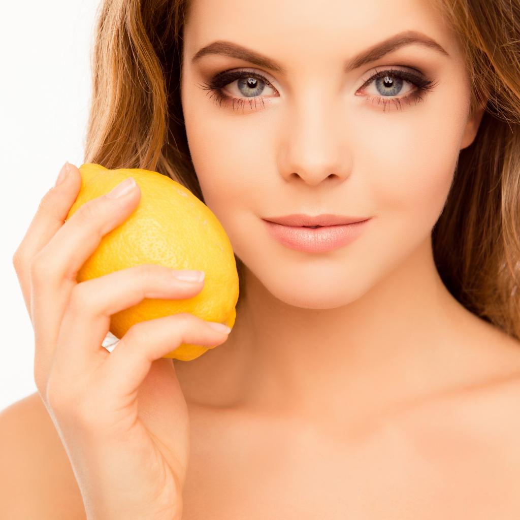 Wallpaper Tender blue-eyed girl with lemon in hand