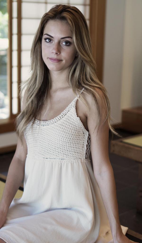 Wallpaper The girl in a white sundress sits on the bench