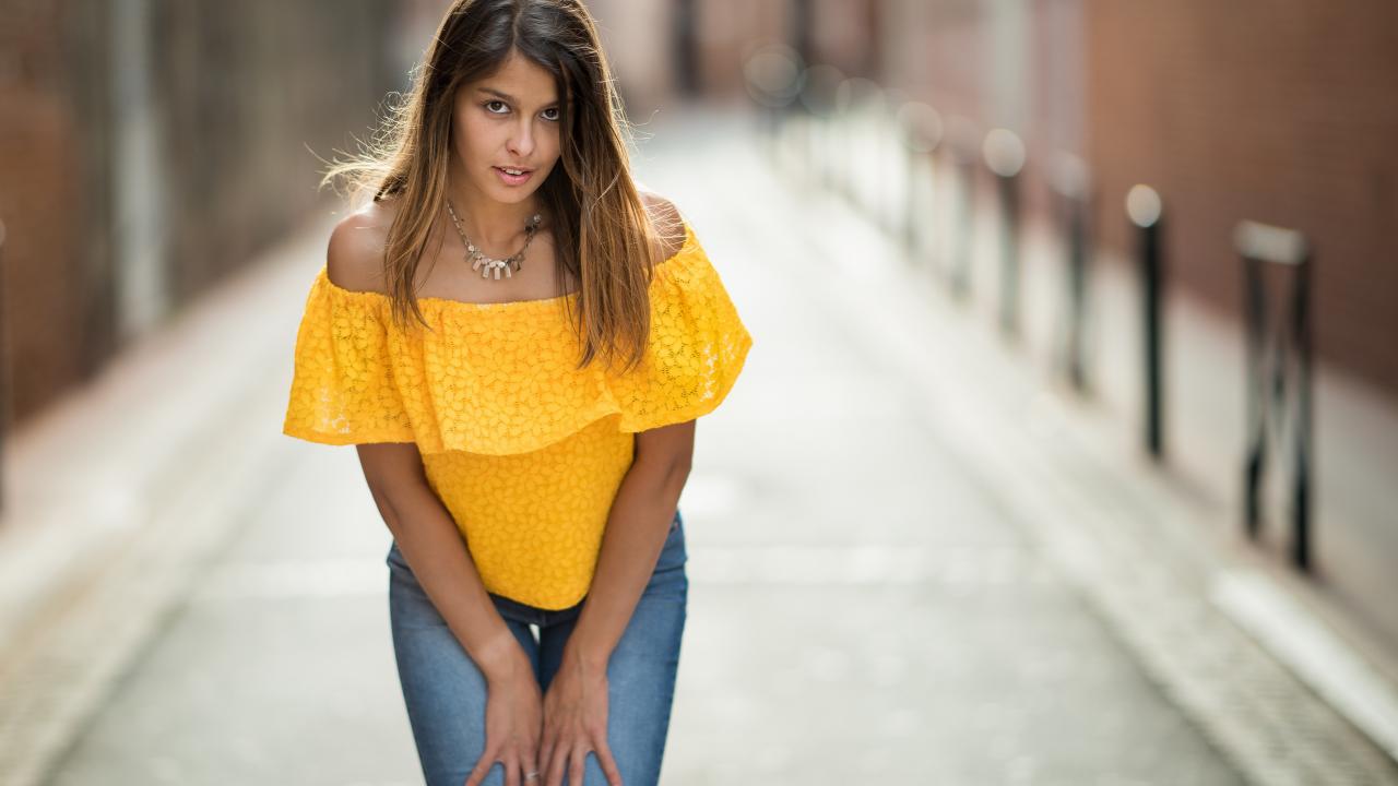 Wallpaper Girl in jeans standing on the street