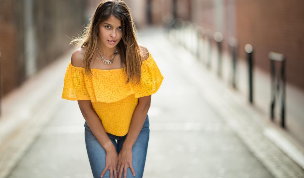 Wallpaper Girl in jeans standing on the street