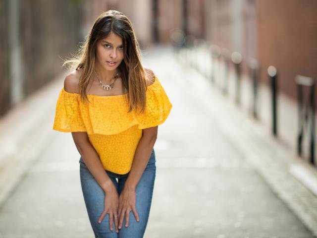 Wallpaper Girl in jeans standing on the street