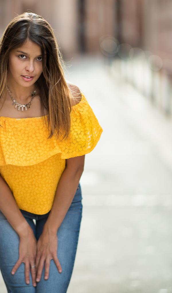 Wallpaper Girl in jeans standing on the street