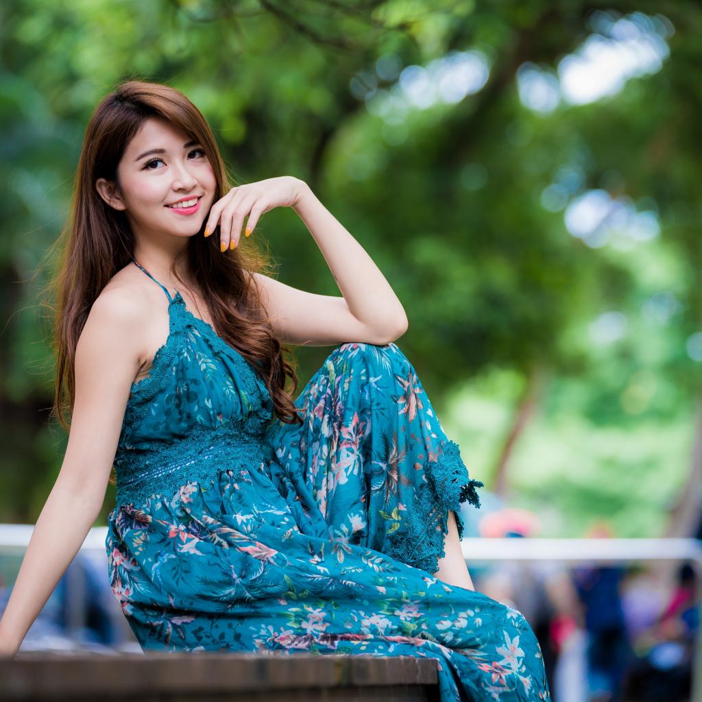 Wallpaper Smiling Asian girl in beautiful dress