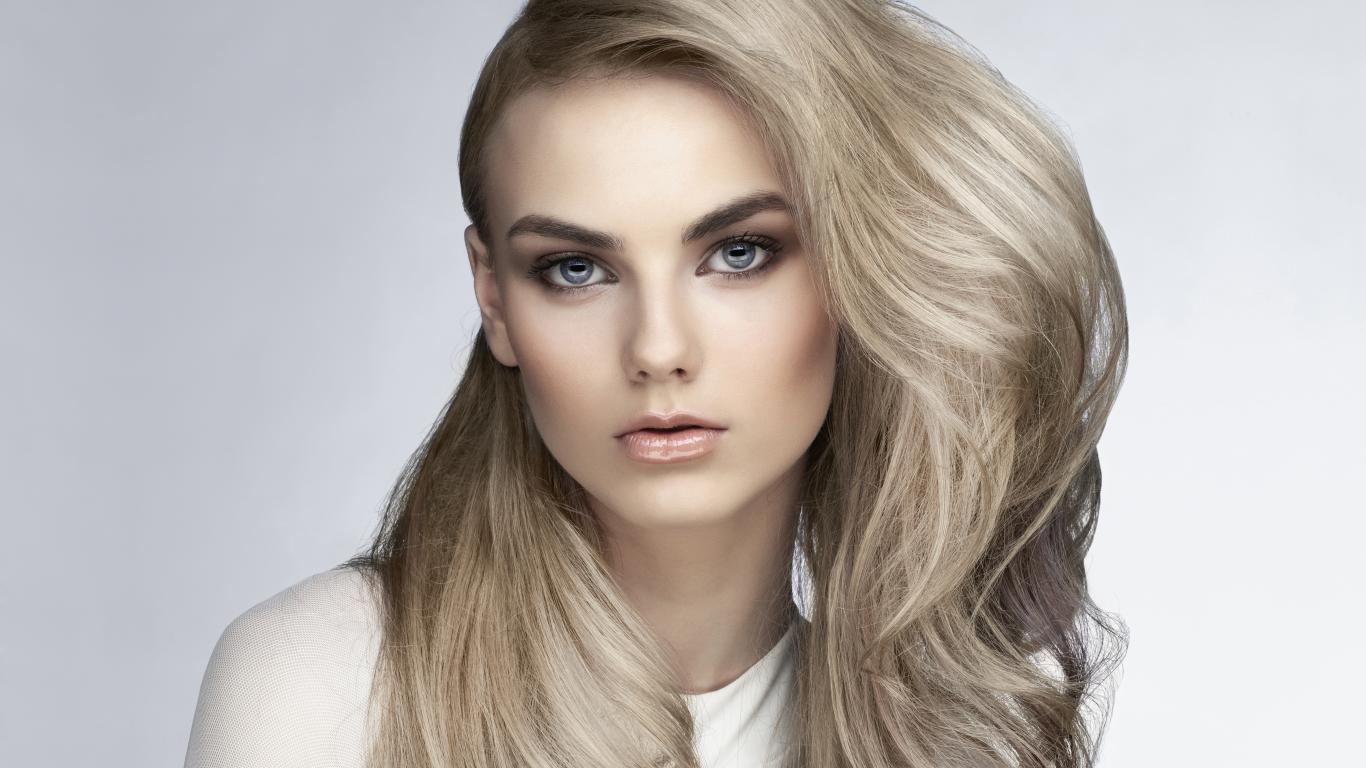 Wallpaper Beautiful blue-eyed blonde with lush hair