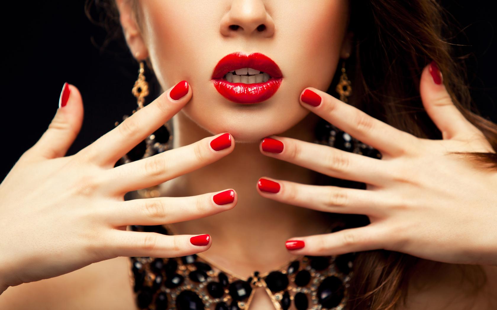 Wallpaper Bright red nails of a beautiful girl