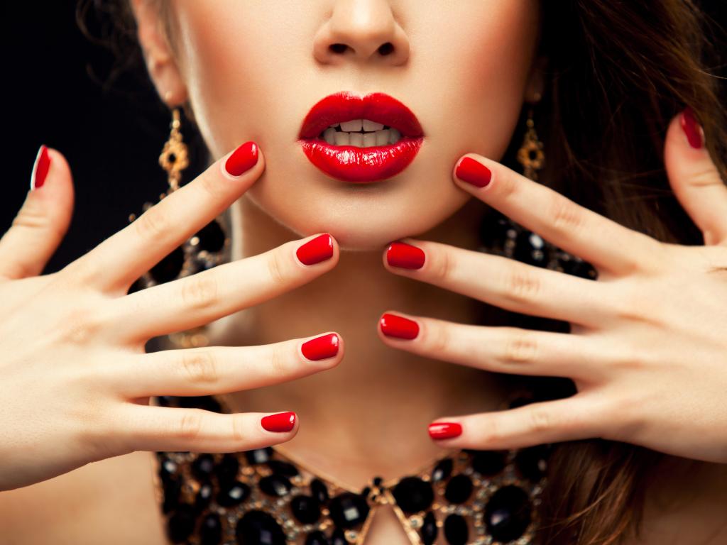 Wallpaper Bright red nails of a beautiful girl