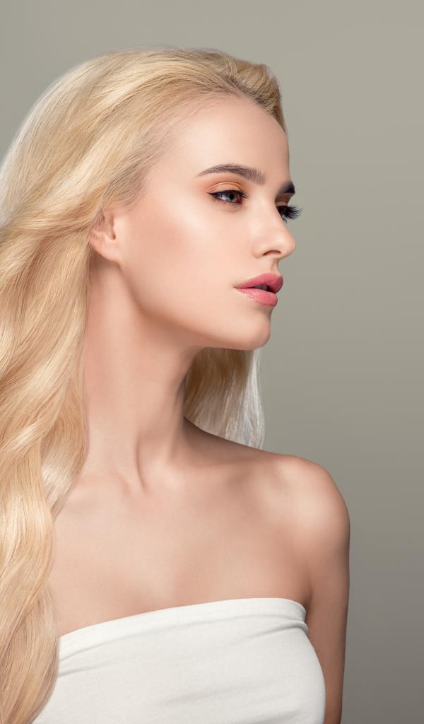 Wallpaper Beautiful long-haired blonde girl on a gray background