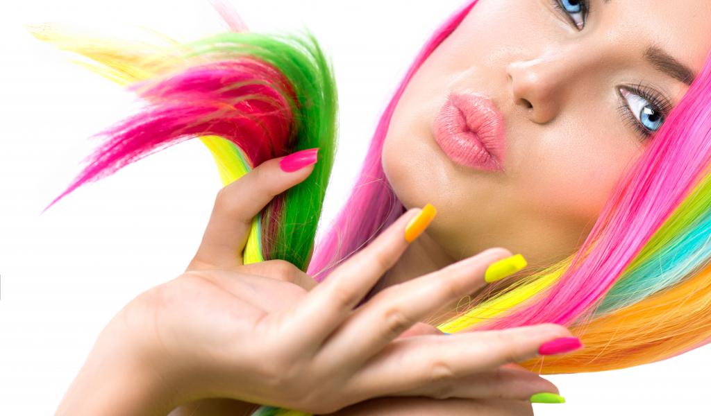 Wallpaper Beautiful girl with bright makeup and multi-colored hair