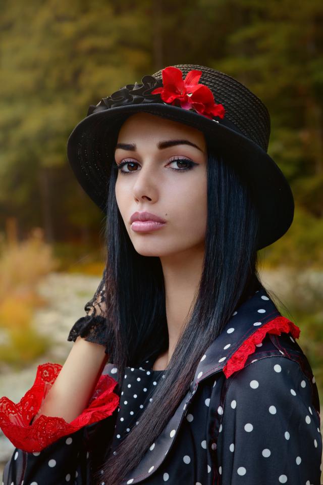 Wallpaper Beautiful brown-eyed girl with a black hat