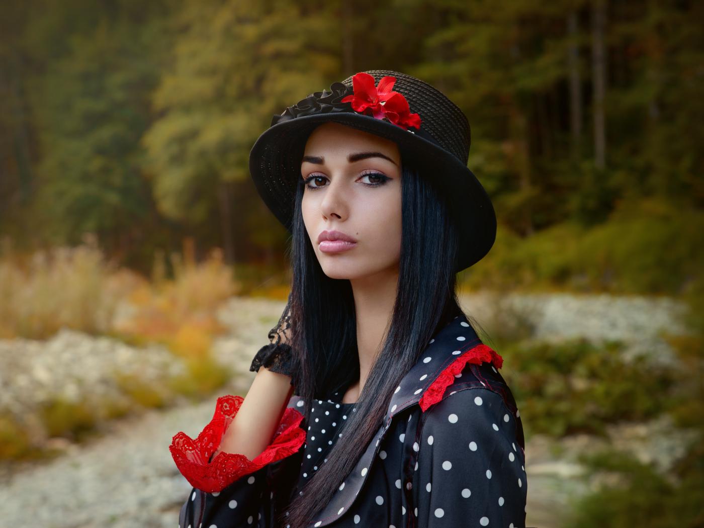 Wallpaper Beautiful brown-eyed girl with a black hat
