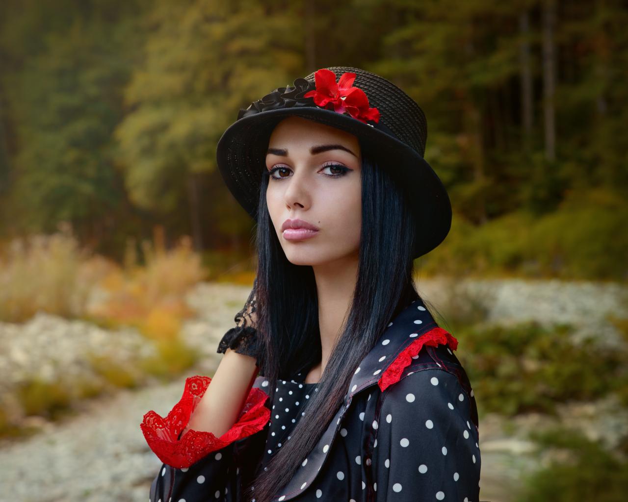 Wallpaper Beautiful brown-eyed girl with a black hat
