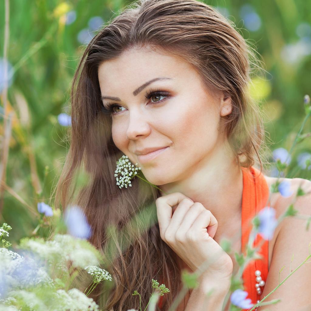 Wallpaper Beautiful tender girl lies in the flowers on the field