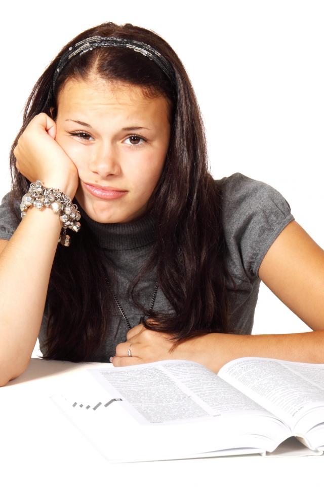 Wallpaper Sad girl reads book on white background
