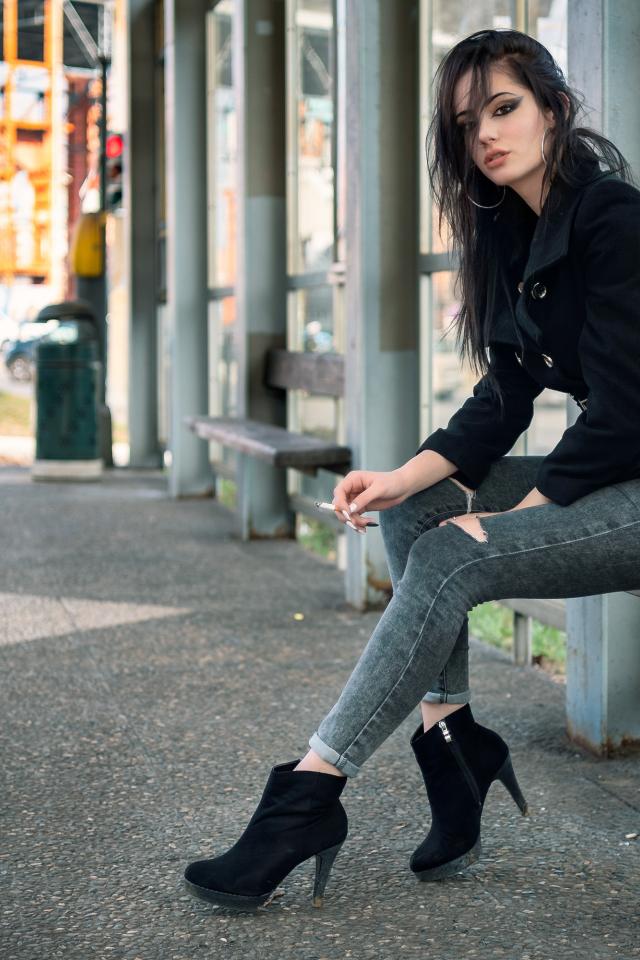 Wallpaper Girl neformalka sitting at the bus stop