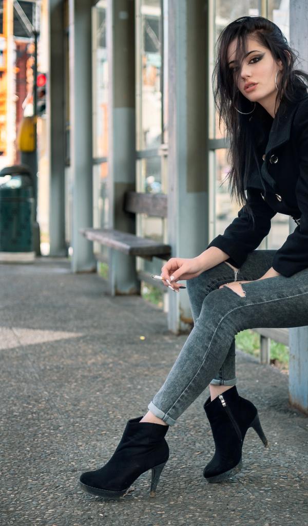 Wallpaper Girl neformalka sitting at the bus stop
