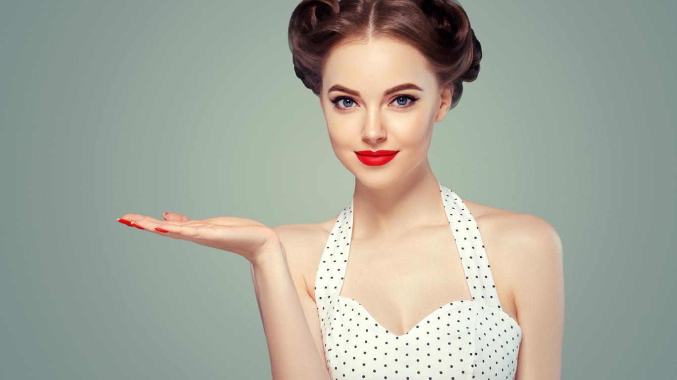 Wallpaper Beautiful girl with a haircut on his head in a dress