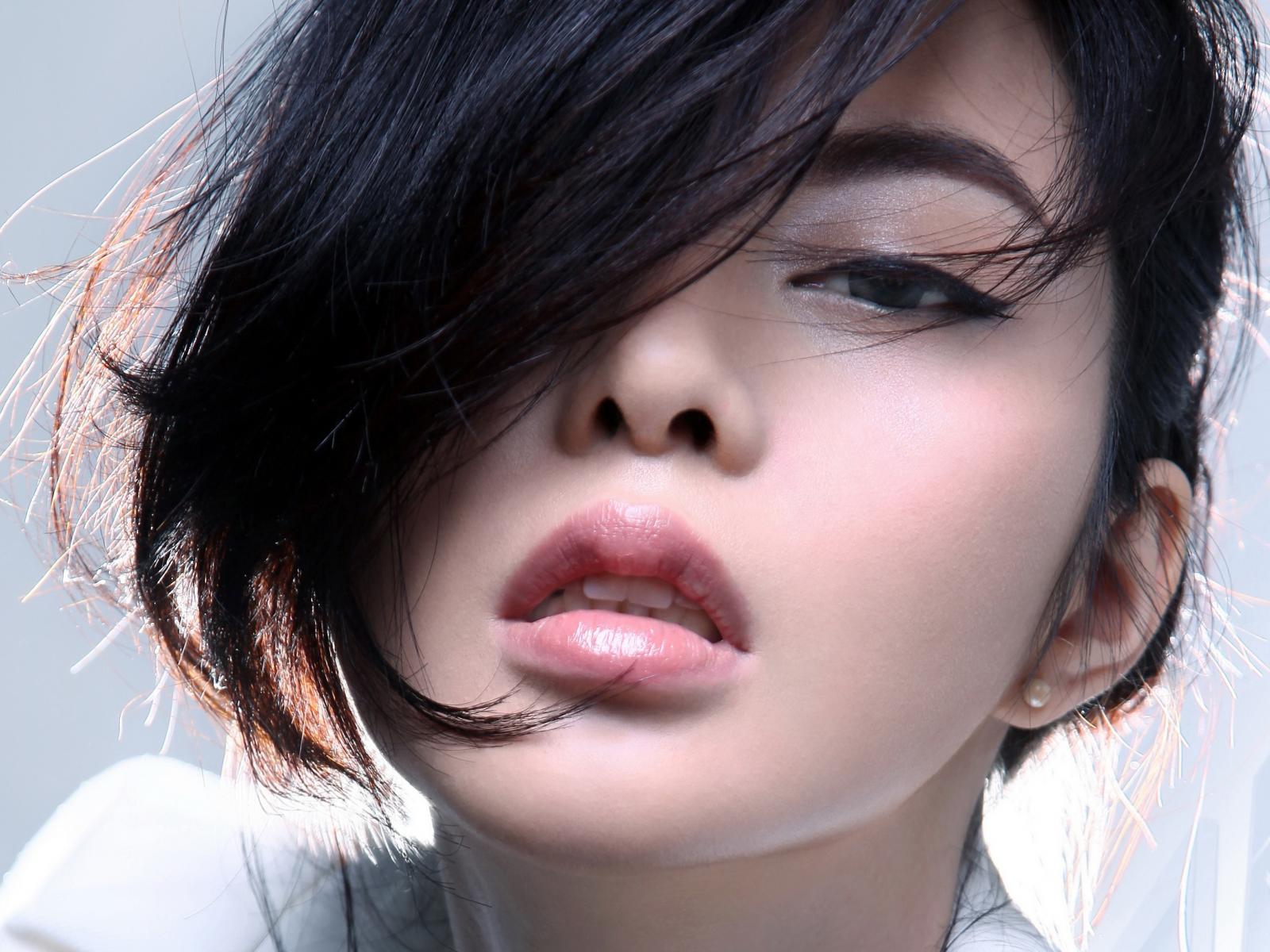 Wallpaper Tender brown-haired girl face closeup