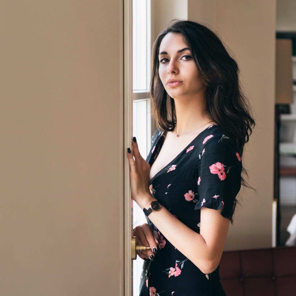 Wallpaper Tender girl in a dress by the window