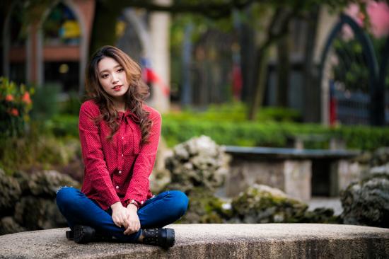 Wallpaper Beautiful Asian in a red shirt