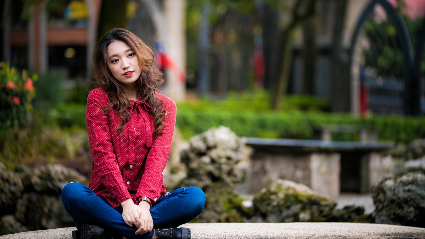 Wallpaper Beautiful Asian in a red shirt