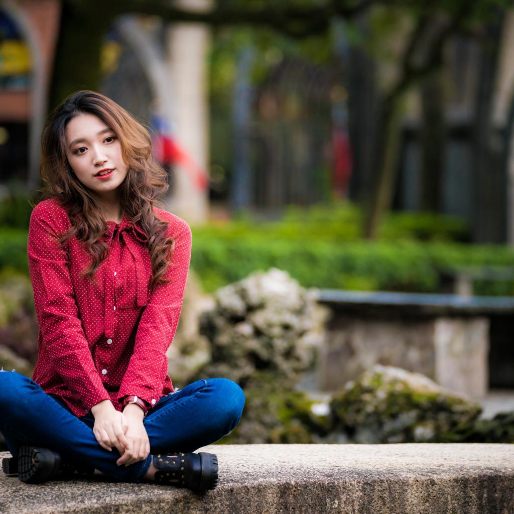 Wallpaper Asian in a plaid shirt stands by a green tree.