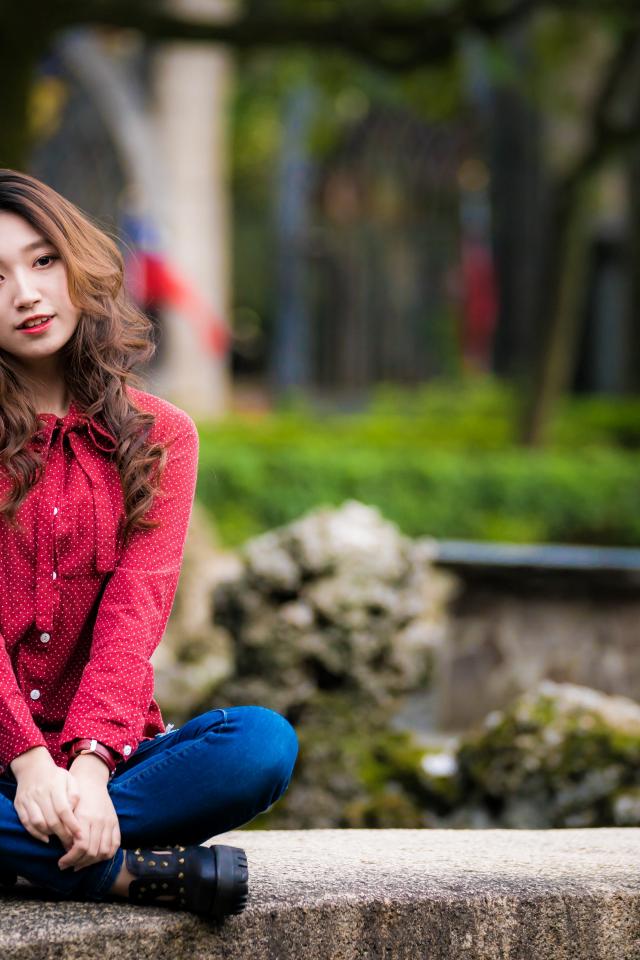 Wallpaper Beautiful Asian in a red shirt