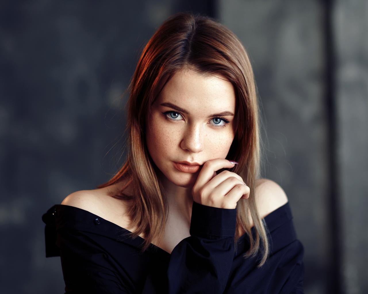 Wallpaper Young girl with blue eyes in a black shirt