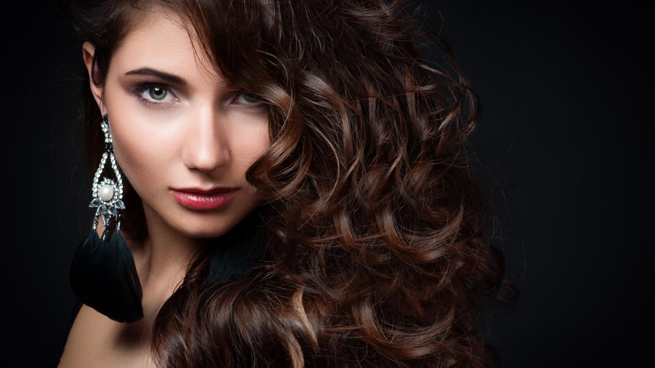 Wallpaper Beautiful brunette with expensive earrings in the ears