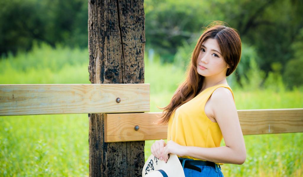Wallpaper Beautiful Asian by the wooden pillar