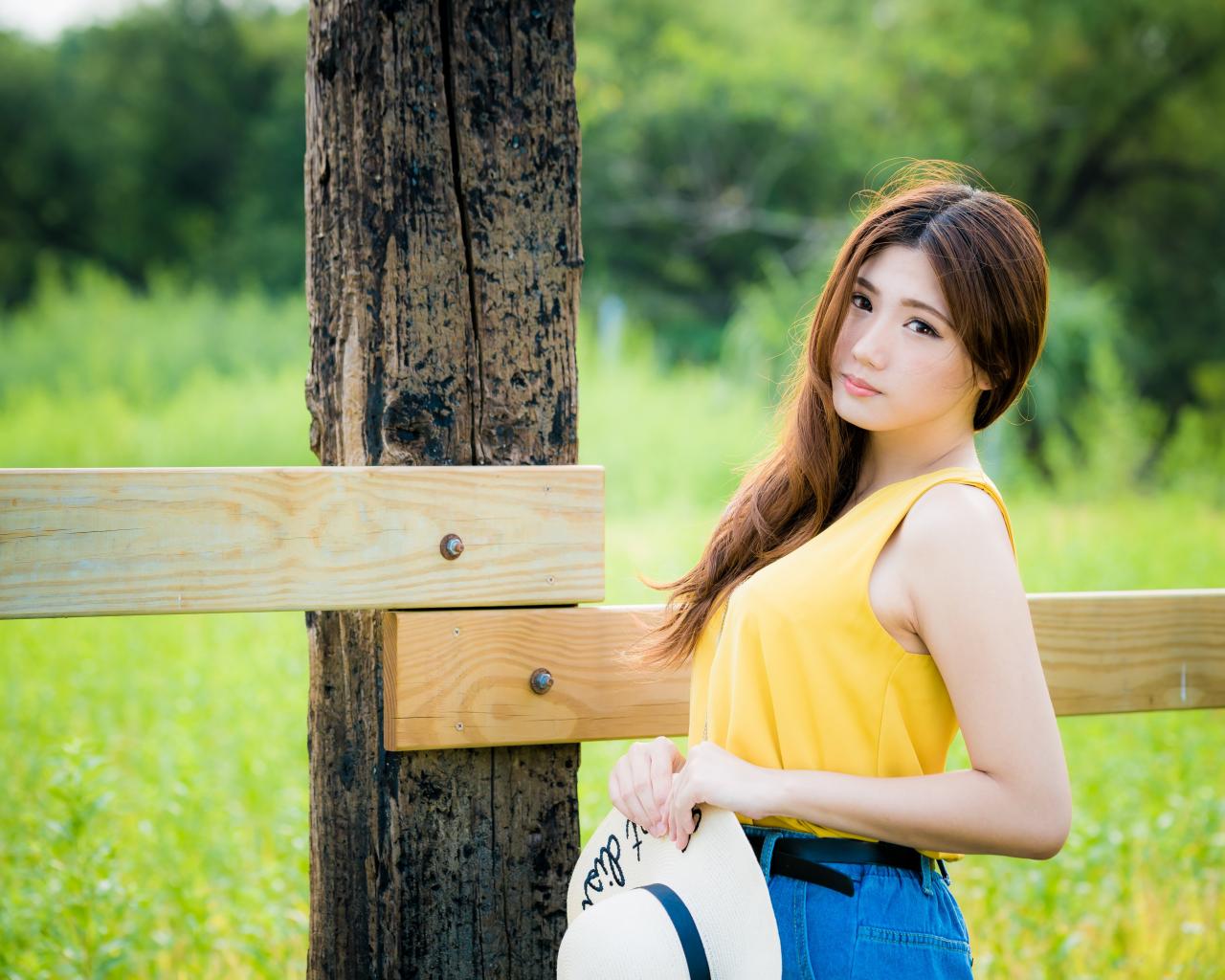 Wallpaper Beautiful Asian by the wooden pillar