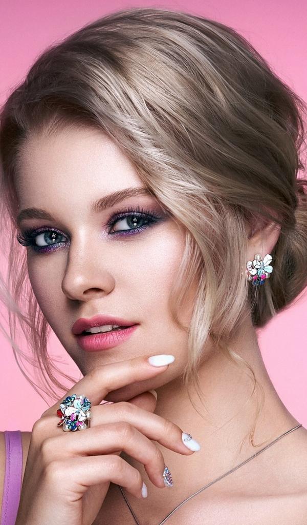 Wallpaper Stylish blonde with hairstyle on a pink background