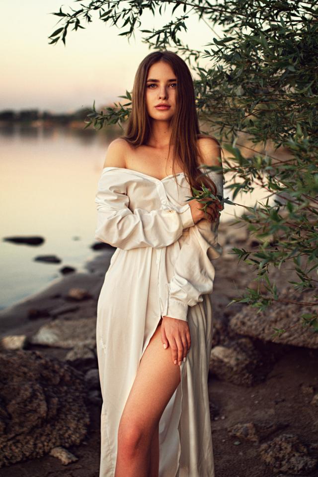 Wallpaper Girl in a beautiful white dress near the water